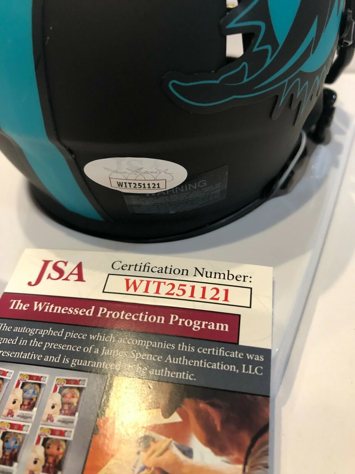 OJ McDuffie hand signed Miami Dolphins eclipse mini helmet.